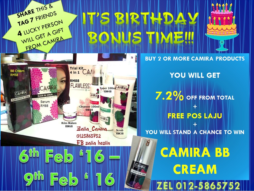 Syaratnya hanya perlu beli 2 atau lebih produk Camira dalam masa 4 hari ini